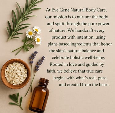 That’s how Eve Gene Natural Body Care was born. Every product I create is mixed with intention, rooted in the belief that what we put on our bodies should honor the beauty and wholeness God designed in us. This isn’t just skin care—it’s care for the whole person, made with love, from my hands to yours.